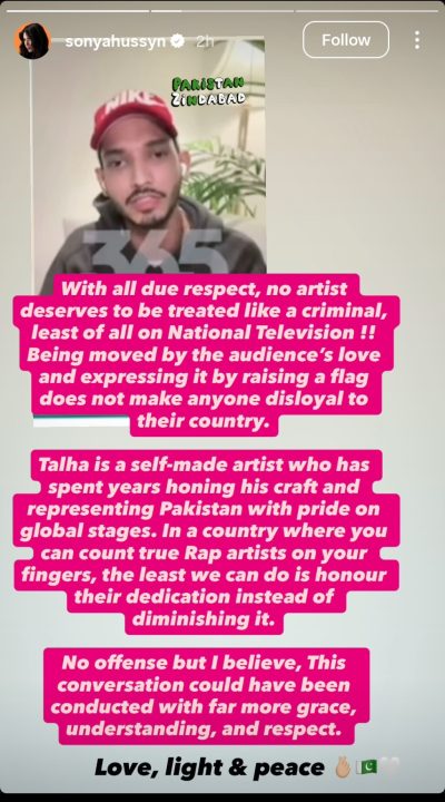 Sonya Hussyn echoed similar sentiments, stating that no artist deserves to be publicly shamed on national television. Kinza Hashmi also expressed her viewpoint, joining the chorus of voices siding with Talha.